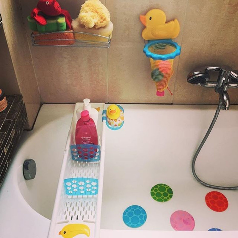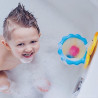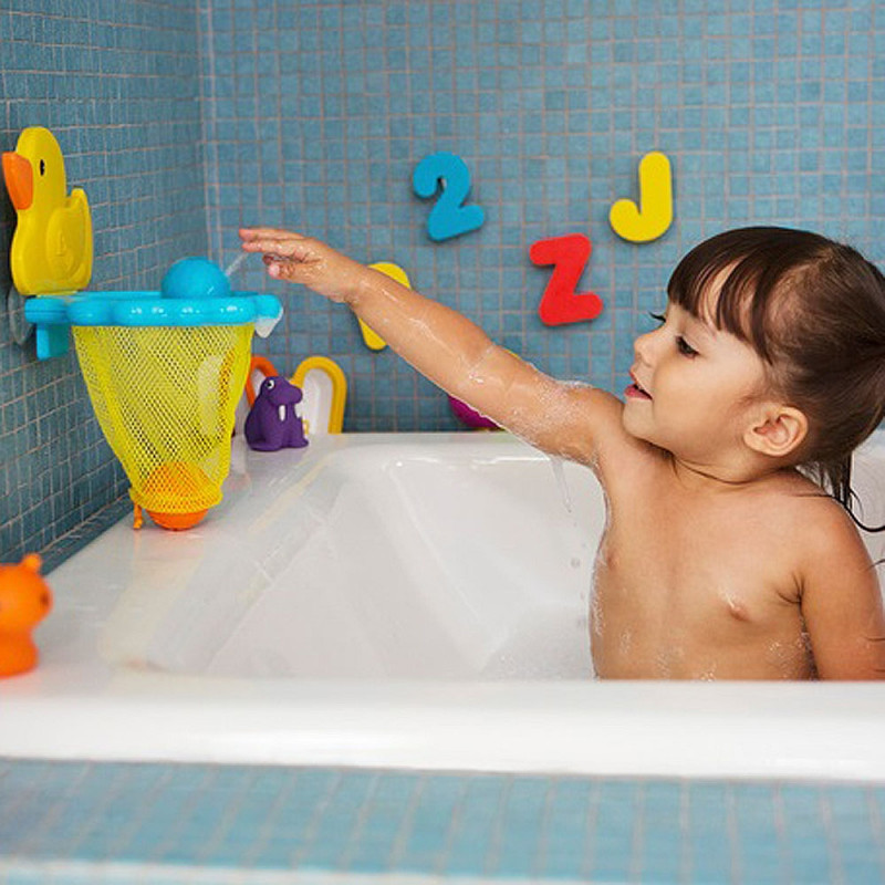 Комплекта се състои от 1 баскетболен кош - пате и 3 цветни топчета. Захваща се за стената в банята с помощта на вендуза. След края на игрите коша може да се свие на две за компактно съхранение. Играта с коша и топките стимулира детското въображение.