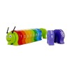 Децата заобичват броенето с тази цветна гъсеничка.Тя стимулира децата да смятат, да разпознават цветове, развива фината моторика на ръцете. Тялото на гъсеничката е съставено от 10 махащи се полукръга. Всеки е с различен цвят и нарисувано число + съответния брой точки. Така детето свързва числото с броя - най-лесния начин за запаметяване на числата. Цветовете преливат един в друг като цветове на дъгата. Можете да играете като карате детето да ги нареди правилно от самото начало или с лисващи няколко части, на които то трябва да намери правилното място. По-трудния вариант - разбърквате подредбата им и то трябва да ги подреди правилно. Първите стъпки в математиката могат да са приятни с веселата, цветна гъсеничка.