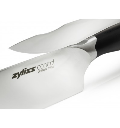 Всички ножове са изработени от висококачествена немска неръждаема стомана, която осигурява перфектни резултати при рязане. Ножовете от серия ZYLISS CONTROL са проектирани така, че да отговарят на различните стилове на рязане - стандартно нарязване или нарязване чрез люлеене с две ръце. Специално проектираната зона на върха на острието е предназначена за лесно и контролирано "люлеене" при рязане с две ръце, а другата зона / при дръжката / подсигурява комфорт на палеца / показалеца при рязане.