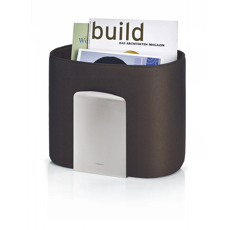 BLOMUS Стойка за списания SPINTA - мока • Размери: 26 х 15,5 х 31,5 см • Цвят: мока • Материал: матирана неръждаема стомана, синтетичен плат Производител: BLOMUS, Германия