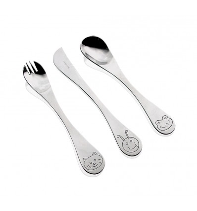 HERDMAR Детски комплект прибори “ANIMALS“- 3 части Комплектът съдържа: • Лъжица за хранене - 1 бр • Вилица - 1 бр • Нож - 1 бр Производител: HERDMAR / Португалия