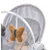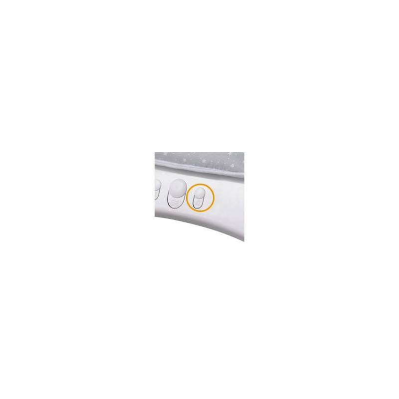 Шезлонгът е удобен, забавен и много практичен. Докато бебeто расте, удобната форма и ползването като люлка, както и успокояващият вибриращ механизъм са цяло съкровище, което действа успокояващо на бебето и е основен помощник в приспиването. Приятните мелодии допълнително удпокояват бебето и му действат приспивно.