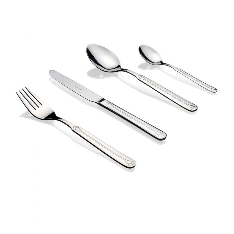 Комплект прибори за хранене Herdmar "CRISTAL" за 12 човека от 130 части. Изработени от неръждаема стомана и подходящи за почистване в съдомиялна машина. Комплектът включва:• Нож за хранене: 12 бр.• Вилица за хранене: 12 бр.• Лъжица за хранене: 12 бр.• Десертен нож: 12 бр• Десертни лъжици: 12 бр• Десертни вилици: 12 бр• Нож за риба: 12 бр• Вилица за риба: 12 бр• Лъжички за чай: 12 бр• Лъжичка за кафе: 12 бр• Вилица за сервиране на месо: 1 бр• Нож за сервиране на месо: 1 бр• Вилица за сервиране на риба: 1 бр• Нож за сервиране на риба: 1 бр• Лопатка за сервиране на торта: 1 бр• Черпак за супа: 1 бр• Черпак за сос: 1 бр• Лъжица за сос: 1 бр• Лопатка за сервиране: 1 бр.• Лъжица за салата: 1 бр