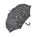 Елегантен чадър с големи черни точки, с удобна дълга дръжка. Чадърът е с автоматично отваряне, може да бъде вашият елегантен аксесоар – въпреки размерите си е лек, удобен и подходящ за всяка визия, който да ви предпази от настроението на времето. Височина: 88 см. Диаметър: 110 см.
