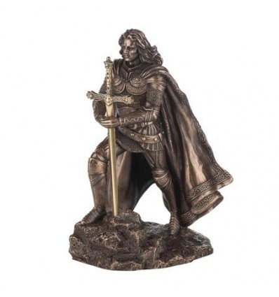 Крал Артур е легендарен вожд на британците от 5 – 6 век, централна фигура в митологията на Великобритания. Той е главен герой на много епични произведения и рицарски романи. Представлява идеала за крал по време на война и в мирно време. Статуетката е изработена прецизно от полирезин с покритие от метал и с внимание към всеки детайл. Размери на статуетката: 15 см х 13 см х 21 см