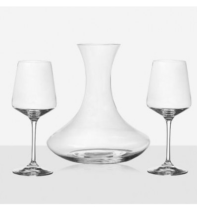 Търсите отличен подарък за годишнината на Ваши приятели? Желаете да не изразходвате прекалено много средства, но все пак да ги зарадвате използвайки въздействието на изненадата и спонтанността? Нашето предложение е този комплект 2 чаши и гарафа за вино, красиво, ефектно и за всеки джоб. Какво по-хубаво от това? ВНИМАНИЕ!: Комплектът притежава способността да зарадва всекиго.