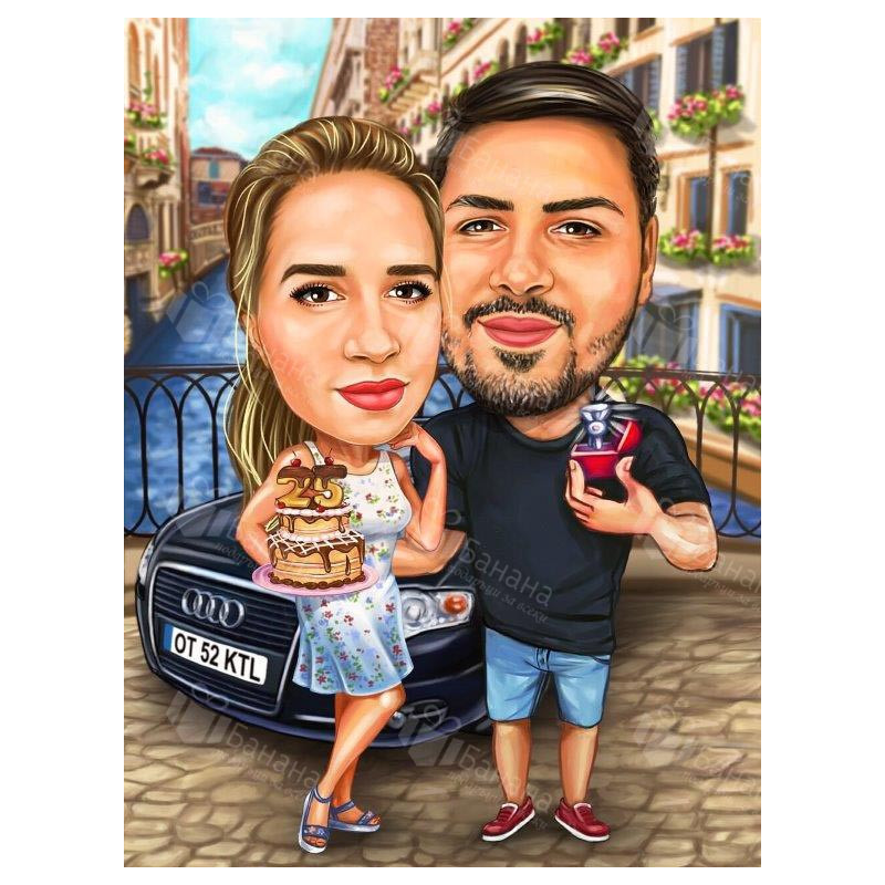 Ние изработваме Вашите карикатури портретно, доближено до реалността. Ако желаете да са по-преувеличени (по-карикатурни), моля да допълните. Размери Размерът на карикатурата зависи от броя на лицата. Ако желаете може да изработим карикатурата на по-малък или по-голям размер от стандартния. Срок за изработка* В натоварен период 7 работни дни (като той може да варира спрямо графика и натовареността, но вземаме под внимание и крайния срок на клиента). Експресна изработка: от 1 до 4 работни дни.  | ||||||