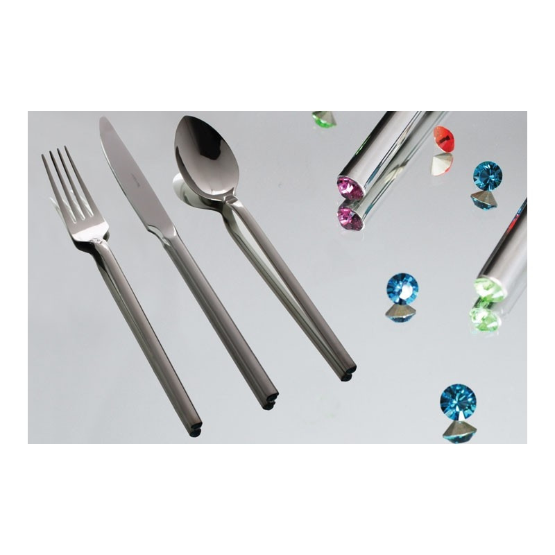 Комплект прибори за хранене Herdmar "DESIRE" за 6 човека от 24 части. • Изработени от неръждаема стомана Всеки прибор има инкрустиран 1 бр бял кристал "SWAROVSKI" Комплектът включва: • Нож за хранене: 6 бр. • Вилица за хранене: 6 бр. • Лъжица за хранене: 6 бр. • Десертна лъжичка: 6 бр. ПРОИЗВОДИТЕЛ: HERDMAR / Португалия