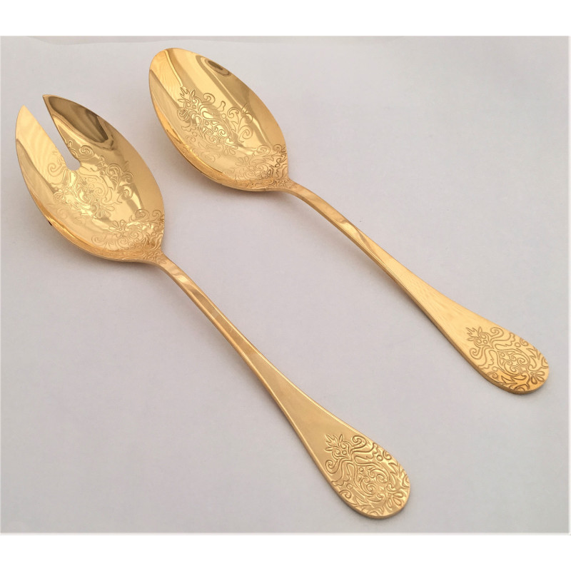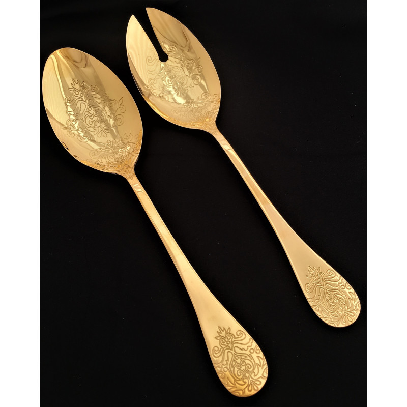 HERDMAR Комплект прибори за салата “POMPADOUR“ - 2 части - позлатен  • Изработени от неръждаема стомана • Подходящи за почистване в съдомиялна машина. • Позлатени с 24 каратово злато (със сертификат ) ПРОИЗВОДИТЕЛ: HERDMAR / Португалия