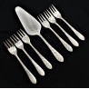 HERDMAR Комплект прибори за торта “ATLANTA №2“- 7 части • Изработени от неръждаема стомана • Подходящи за почистване в съдомиялна машина. • Лазерно гравирани Комплектът включва: • Вилица за торта: 6 бр. • Лопатка за сервиране: 1 бр.ПРОИЗВОДИТЕЛ: HERDMAR / Португалия