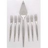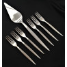 HERDMAR Комплект прибори за торта “TIFFANY №1“- 7 части • Изработени от неръждаема стомана • Подходящи за почистване в съдомиялна машина. • Лазерно гравирани Комплектът включва: • Вилица за торта: 6 бр. • Лопатка за сервиране: 1 бр.ПРОИЗВОДИТЕЛ: HERDMAR / Португалия