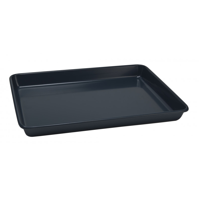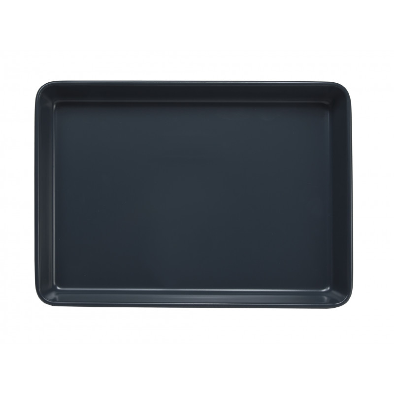 JAMIE OLIVER Тава за печене • Размери: 35 х 24 х 4см • Изработена от здрава въглеродна стомана - 0,6 мм • Мултифункционална - мoже да се използва за печене, гриловане, сладки, торти и др. • Безвредно незалепващо покритие XYLAN