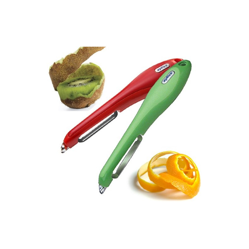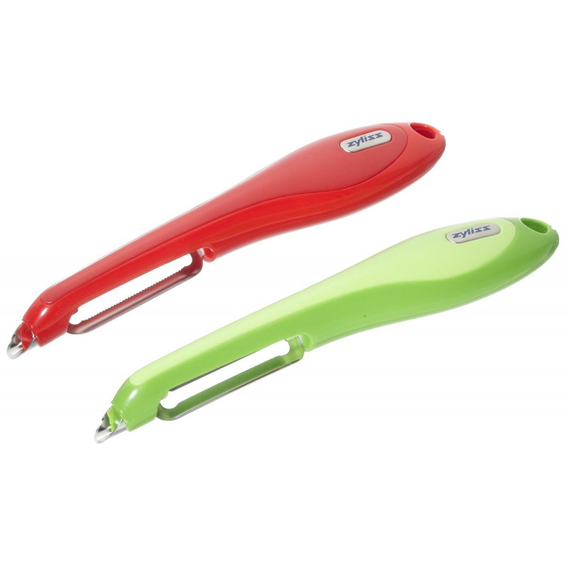 ZYLISS Комплект от 2 белачки › Универсална белачка - зелена - с гладко острие › Белачка за домати и киви - червена - с назъбено острие • Специален връх за лесно почистване на продуктите • Подходящи за лява и дясна ръка • Материал: ASB,SS,POM• Остриета от висококачествена неръждаема стоманаПроизводител: DKB Household / Англия