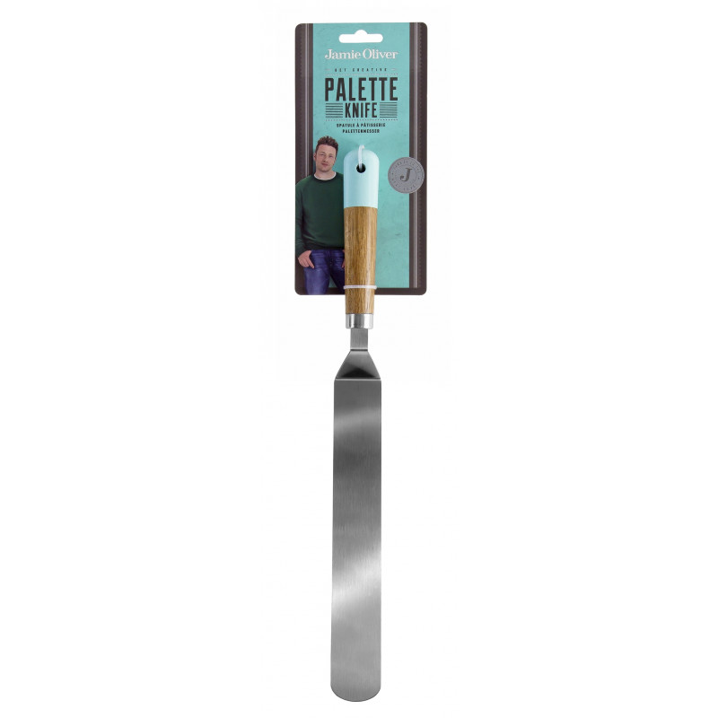 Шпатула за торта / Палетен нож JAMIE OLIVER• Дръжка от акациево дърво със светло син край и дупка за окачване• Гъвкаво острие за перфектно покриване на торти и сладкиши• За употреба с лява или дясна ръка• Дълго острие (23см) за лесно покриване на големи повърхности• Материал: неръждаема стомана, дървоПроизводител: DKB / Household / Англия