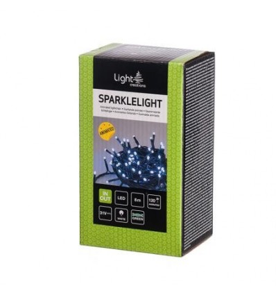 120 бр. LED лампички със студена светлина, дължина 8 м. За вътрешна и външна употреба. Осветлението е с програма за мигане.