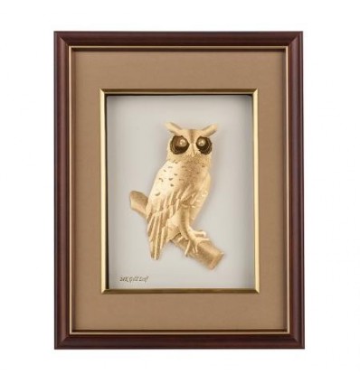 Луксозна репродукция на живописно пресъздаден бухал върху клон. Изработена от 24 карата златно покритие под формата на тънък фин пресован златен лист. Артистична визия. Предлага се в красива подаръчна кутия. Произведена от Orchids Gold. Размери: 24.5см. /31 см.
