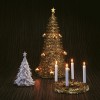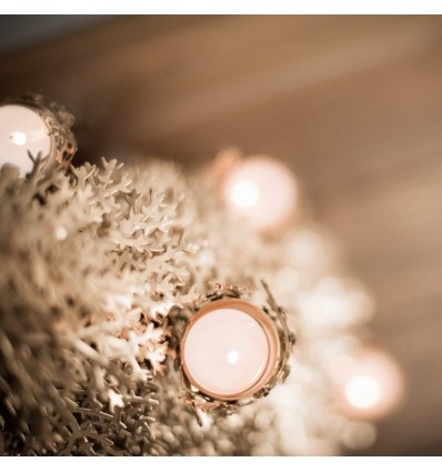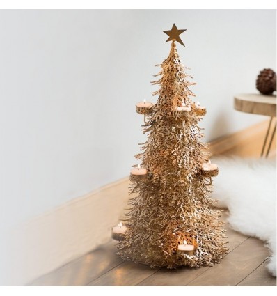 9 чаени свещи обикалят дървото и разпространяват особено празнично настроение, когато топлата светлина се отразява от златистите клони. Високо и величествено, дървото изпъква с височина 60 см.