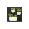 Дизайнерите на PHILIPPI отново са с уникално и впечатляващо решение - картина от живи цветя! Можете да се наслаждавате на вашите цветя, кактуси или билки, аранжирани според Вашия вкус и предпочитания. В комплекта: • Стоманена основа - 1 бр • Кашпи - 3 бр