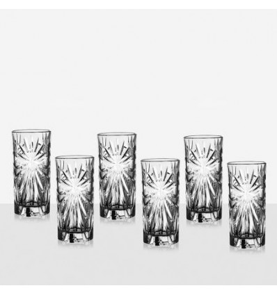 Чаши: Ø 7 см. Височина: 15 см. Вместимост: 360 мл. Стилен сервиз от 6 чаши за вода, произведени от италианската фирма RCR Crystal. Подходящи за почистване в съдомиялна машина. Подарете си финес и красота на масата с италианско качество. Материал : кристалин 2,45 % плътност.