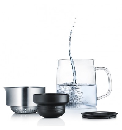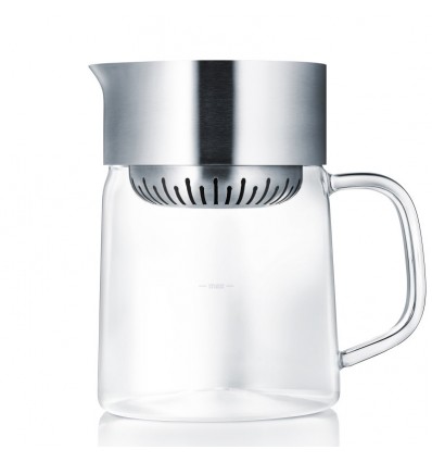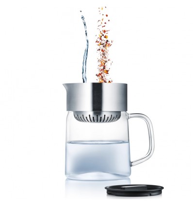 BLOMUS Кана за приготвяне на TEA-JAY - 1000 мл • Височина: 18 см • Диаметър: Ø 12,5 см • Вместимост: 1000 мл • Материал: матирана неръждаема стомана, стъкло, силикон, пластмаса • Производител: BLOMUS / Германия DESIGN: Flöz Design