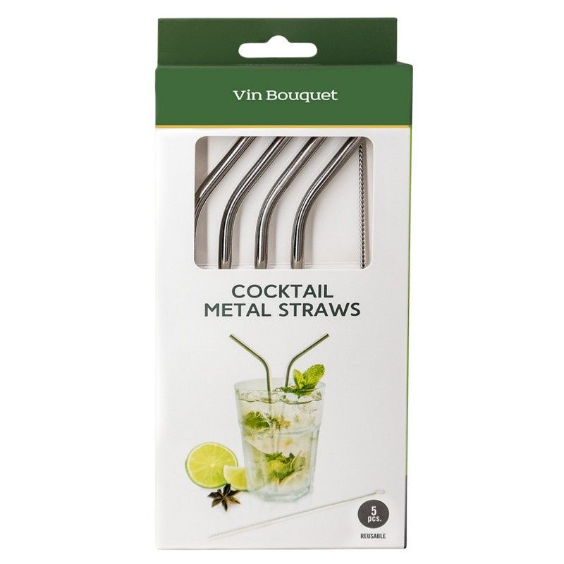 Vin Bouquet Коктейлни метални сламки• Размери: - Дължина: 22 см. - Диаметър: Ø 5 мм.• Материал: Стомана• Комплектът съдържа: - Метални сламки - 4 бр. - Четка за почистване - 1 бр.• Производител: Vin Bouquet, Испания