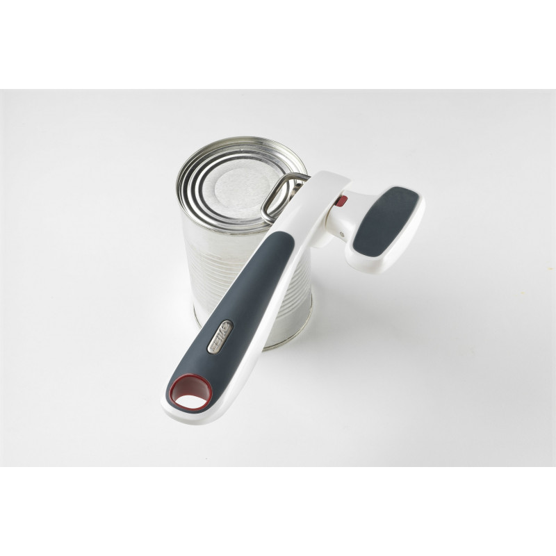 Консервата се отваря отгоре, а не отстрани, за да се намали рискът от нараняване.  Не е необходимо да боравите с капака – уникалният механизъм и магнита улесняват повдигането и свалянето на капака.