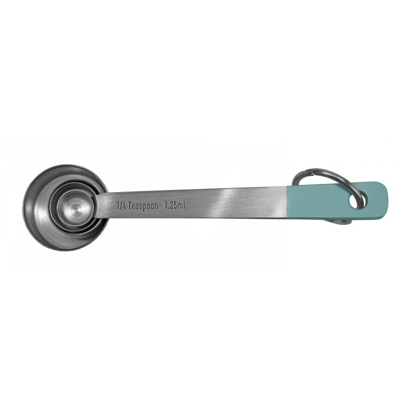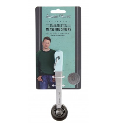 JAMIE OLIVER Мерителни лъжички - 4 бр - Лъжичка 1:   ¼ лъжица ( 1,25 мл) - Лъжичка 2:   ¹⁄3 лъжица ( 2,5 мл) - Лъжичка 3:    ½ лъжица ( 5 мл) - Лъжичка 4:    ¾ лъжица ( 15 мл) • Изработени от неръждаема стомана • Бързо и лесно измерване • Компактни за съхранение• Подходящи за съдомиялна машина