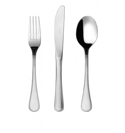 HERDMAR Комплект прибори за хранене "SEVILHA" за 6 човека от 24 части. • Изработени от неръждаема стомана 18/10 • Подходящи за почистване в съдомиялна машина. Комплектът включва: • Нож за хранене: 6 бр. • Вилица за хранене: 6 бр. • Лъжица за хранене: 6 бр. • Десертна лъжичка: 6 бр. ПРОИЗВОДИТЕЛ: HERDMAR / Португалия