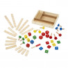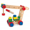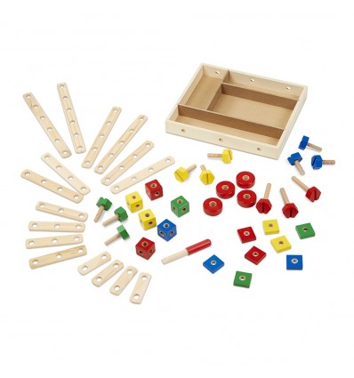 Този класически строителен конструктор включва 48 здрави дървени елемента – гайки, болтове, оразмерени и пробити дъски за напасване и свързване. Детето може да създаде кран, мотор, самолет или състезателна кола. С малко повече въображение предложените елементи могат да създадат и други интересни предмети. Комплекта е от здрава дървесина, а играта с него развива детските умения, концетрация, логика и фина моторика на ръката.
