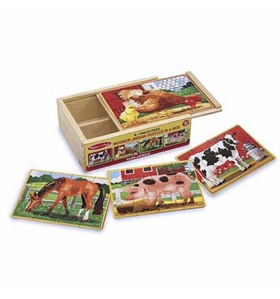Комплекта се състои от 4 пъзела с животни от фермата, всеки с по 12 едри части. Частите на всеки от пъзелите се съхранява в собствено отделение на кутията. Капака се отваря с плъзгане, като той може да служи за основа на пъзел. Отстрани на кутията има картинки на пъзелите, които да служат за ориентир по време на сглобяването. Отлично занимание по време на път.