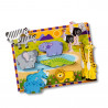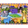 Върху здравият, дървен борд има 8 африкански животни. Те са едри и лесни за хващане. Под формата на всяко има картинка на същото животно и така детето може да с ориентира къде да постави фигурката. С тях може да се играе и отделно, да се броят, да се прерисуват върху лист, да се измислят приказки или истински истории с тях.Чудесно занимание за подобряване фината моторика на децата.