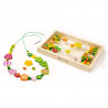 С 5-те цветни въженца и 120 дървени мъниста-цветя можете да правите безкрайни комбинации в украсяването.