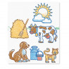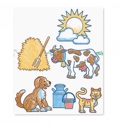 Тематичен комплект печати на тема Ферма с всичко необходимо, за да се създадат цветни сцени от живота във фермата. Комбинирайте, създавайте и оцветявайте с включените моливи.