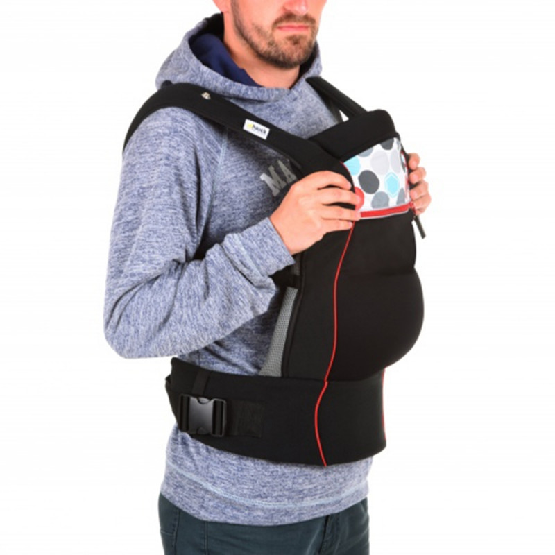 Този модел предлага най-добър комфорт не само за вашето дете, но и за самата вас. Тежестта се разпределя между раменете и кръста, за да се разпредели правилно тежестта. Дължината на раменните ремъци и коланът на тазобедрената става се регулират индивидуално.