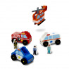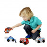 Комплект от 4 дървени, спасителни превозни средства – медицински хеликопер, поицейска кола, линейка, пожарна и фигурки към тях. Колелата им се движат и децата могат практически да си играят с тях, докато опознават цветове, професии и броене до 4.