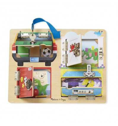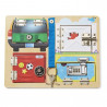 Отключете, отворете и се забавлявайте с картините зад тези вратички. Това е игра и учене в едно. Децата ще се учат да създават истории, вдъхновени от това, което намират зад вратата.Ще се запознават с различните начини на заключване. Чудесна играчка за развиване на фината моторика, координацията око-ръка, учене на цветове, номера, животни и още много. Към комплекта има ключ.