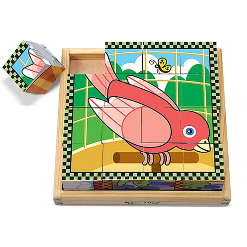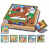 В този уникален комплект има 16 солидни дървени кубчета. На всяка страна има част от животно. Въртете ги в дървената кутия и завършете всяка от шестте цветни картини.
