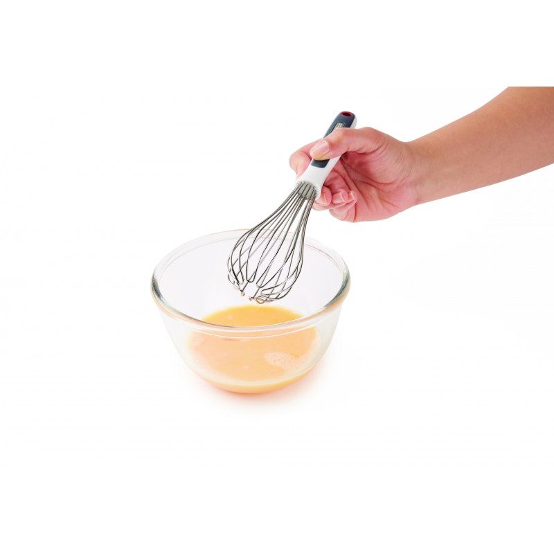 Практичен и удобен тел за разбиване на марка Zyliss - идеалният помощник за всяка кухня. Отвореният край предотвратява запушване и задържане на остатъци от хранителни продукти по време на разбиване и почистване.  Здравата телена рамка помага за идеално разбиване, без бучки.