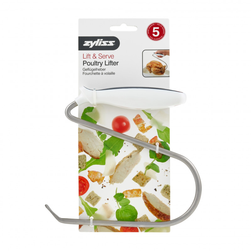 Zyliss Прибор за сервиране на пиле • Материал: неръждаема стомана, пластмаса• Повдига до 10 кг • Подходящ за почистване в съдомиялна машинаПроизводител: Zyliss / Швейцария