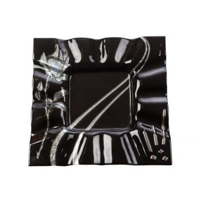 Предлагаме на вашето внимание уникална фруктиера, изработена от муранско стъкло. Тъмночерният цвят на артикула, в съчетание от изрисувана сребърна роза, носи усещане за лукс и красота. Серията Silver Rose ще допринесе за изискания вид на масата по време на семейни поводи. Препоръчва се ръчно почистване, за да се запази красотата и цялостната украса на фруктиерата. Размери: 30/30 см. Цената включва кутия с размери – 34/34/3,5 см.