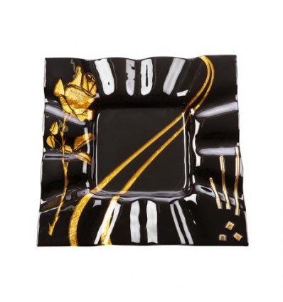 Предлагаме на вашето внимание уникална фруктиера, изработена от муранско стъкло. Тъмночерният цвят на артикула, в съчетание от изрисувана златиста роза, носи усещане за лукс и красота. Серията Gold Rose ще допринесе за изискания вид на масата по време на семейни поводи. Препоръчва се ръчно почистване, за да се запази красотата и цялостната украса на фруктиерата. Цената включва кутия с размери – 34/34/3,5 см. Размери на фруктиерата: 30/30 см.