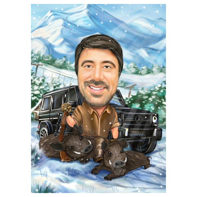 Вашата карикатура се отпечатва върху висококачествена хартия или канава/платно в избран от Вас размер.