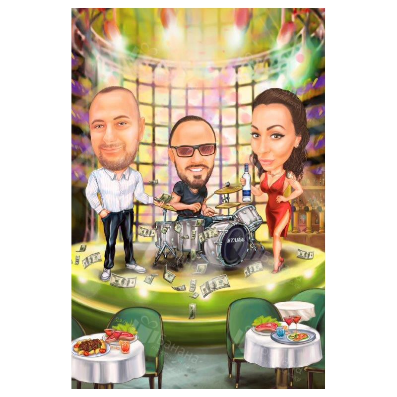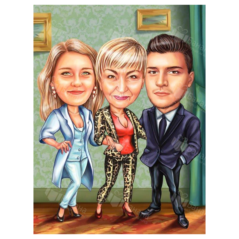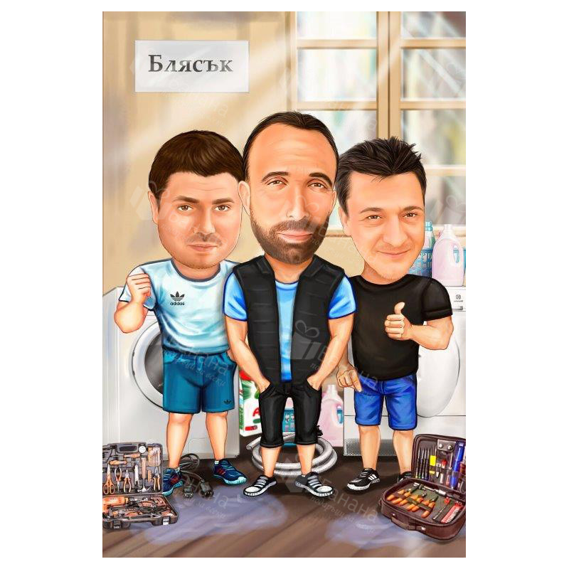 Ние изработваме Вашите карикатури портретно, доближено до реалността. Ако желаете да са по-преувеличени (по-карикатурни), моля да допълните. Размери Размерът на карикатурата зависи от броя на лицата. Ако желаете може да изработим карикатурата на по-малък или по-голям размер от стандартния. Срок за изработка* В натоварен период 7 работни дни (като той може да варира спрямо графика и натовареността, но вземаме под внимание и крайния срок на клиента). Експресна изработка: от 1 до 4 работни дни.  | ||||||