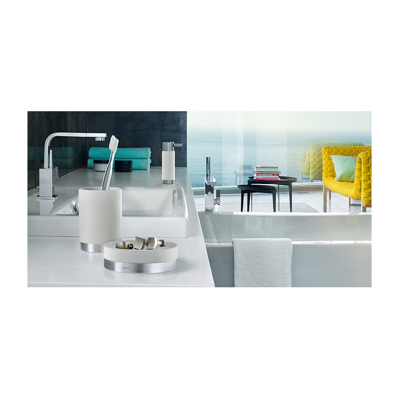 BLOMUS Поставка за четки за зъби ARA • Височина: 11,5 см • Диаметър: Ø 8,2 см• Цвят: бял• Материал: неръждаема стомана, изкуствен камък POLYSTONE • Производител: BLOMUS, Германия DESIGN: Uwe Spannagel