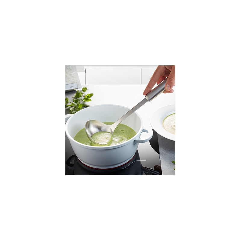 GEFU Стоманен черпак- серия "PRIMELINE"• Материал: висококачествена неръждаема стомана / пластмаса • Размери: 33,9 х 9 см • Капацитет: 100 мл• Можете да миете в съдомиялна машина• Ергономична дръжкаПроизводител: GEFU / Германия