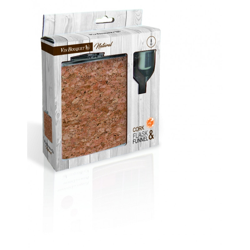 Vin Bouquet Бутилка за алкохол с фунийка "Корк"• Размери на опаковката: 11,5 х 11,5 х 24 см.• Тегло: 0,182 кг.• Вместимост: 236 мл./8 oz• Материал: Стомана; коркПроизводител: Vin Bouquet, Испания