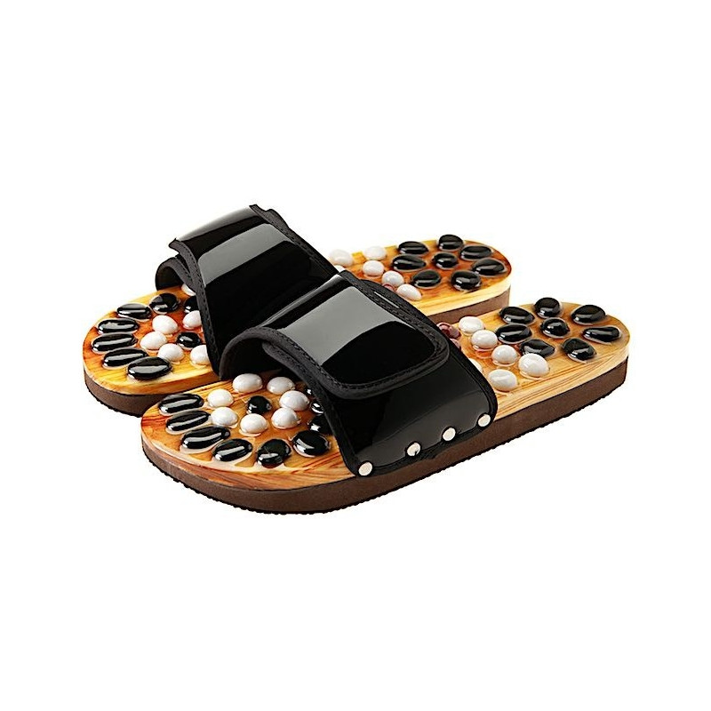 Терапията с естествени камъни е мощно средство за релаксация, възстановяване на емоционалния баланс, облекчаване на мускулното напрежение. Масажиращите чехли на CASADA са изработени от 100% естествени материали. С помощта на органични смоли, върху дървена подметка са поставени общо 54 естествени камъка от нефрит, яспис и магнетит.
