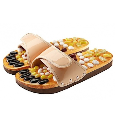Терапията с естествени камъни е мощно средство за релаксация, възстановяване на емоционалния баланс, облекчаване на мускулното напрежение. Масажиращите чехли на CASADA са изработени от 100% естествени материали. С помощта на органични смоли, върху дървена подметка са поставени общо 54 естествени камъка от нефрит, яспис и магнетит.