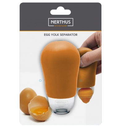 Иновативен и интелигентен сепаратор за лесно разделяне на белтъци и жълтъци. Засмукващ принцип – счупете яйцето в купа, хванете прибора като стиснете силиконовата топка и поставете прибора над жълтъка. Отпуснете, за да влезе въздух, който засмуква жълтъка и готово! За да изтласкате жълтъка, стиснете отново силиконовата част.