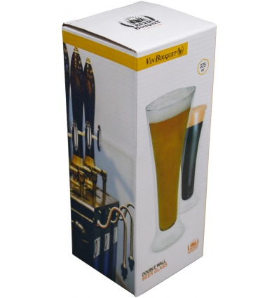 Vin Bouquet Двустенна чаша за бира - 325 мл.• Размери на опаковката: 9 x 21 x 9 см.• Материал: Термоустойчиво боросиликатно стъкло• Вместимост: 0.325 л.• Тегло: 0.219 кг.• Двустенна• Индивидуално опакованаПроизводител: Vin Bouquet, Испания